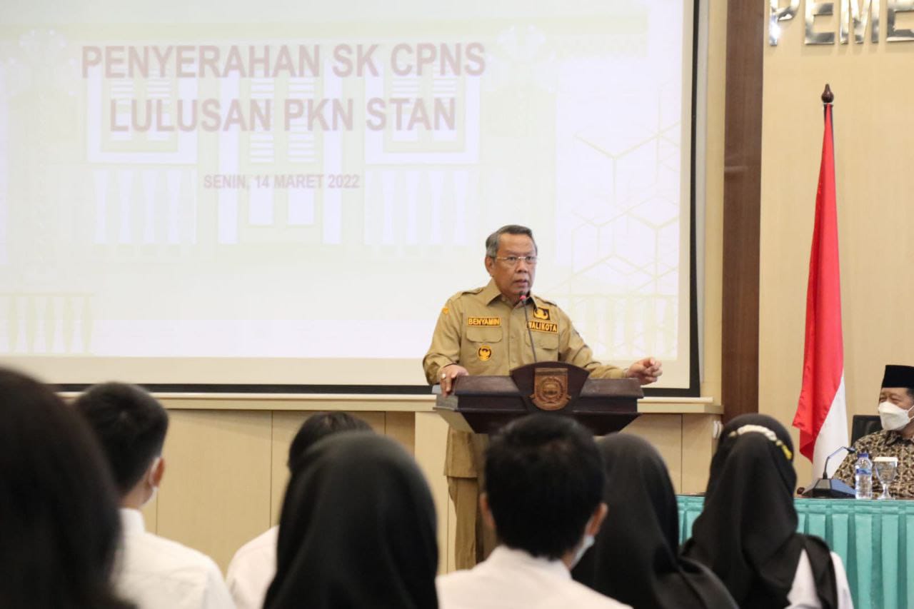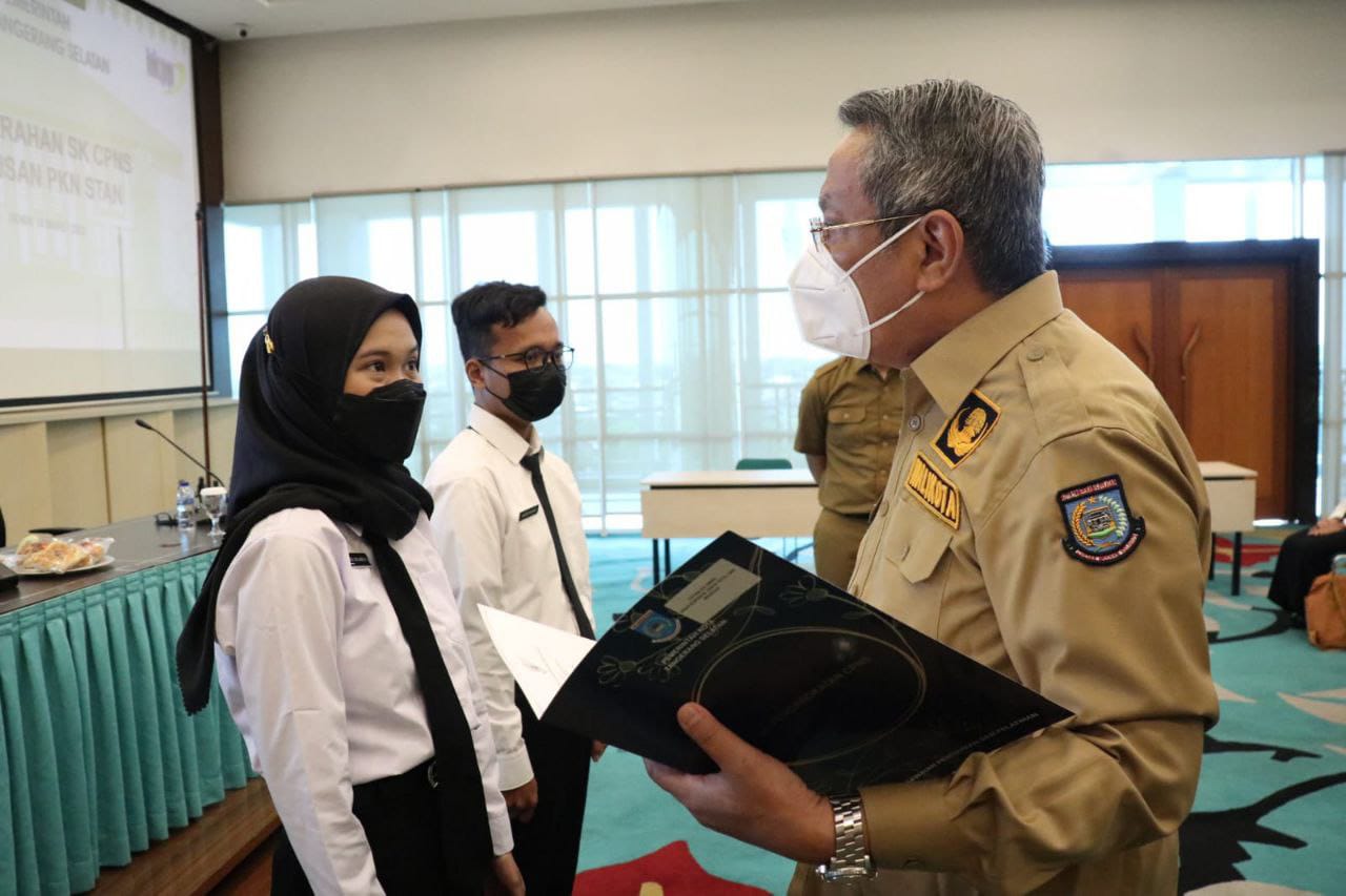 Penyerahan SK CPNS dari Lulusan PKN STAN bertempat di Ruang Blandongan, Balaikota Tangerang Selatan, Senin (14/03/2022).