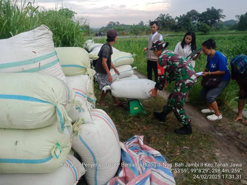 24 Februari 2025 – Koramil 10/ Tanah Jawa Kodim 0207/Simalungun Sertu Oloan Pangaribuan melaksanakan pendampingan terhadap Tim Bulog Pematang Siantar dalam kegiatan penyerapan gabah hasil panen dari Kelompok Tani Saroha I. Sebanyak 3.052 kg, dengan Ketua Kelompok Tani Edu H Sibarani dan Petani Bapak Alexander Panjaitan di Huta Hitetano, Nagori Bah Jambi II, Kecamatan Tanah Jawa, Kabupaten Simalungun. Gabah berhasil diserap dalam upaya mendukung ketahanan pangan nasional.