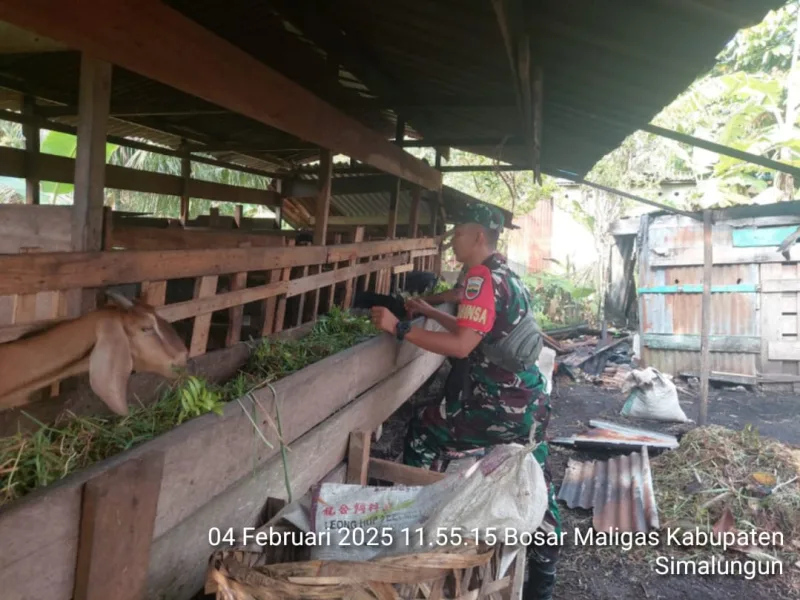 4 Februari 2025, Bintara Pembina Desa (Babinsa) Koramil 07/Bosar Maligas Kodim 0207/Simalungun Sertu Eka Syahputra, Bersama Pangulu Nagori Adil Makmur Abdul Muin Purba, Melaksanakan kegiatan Komunikasi Sosial (Komsos) dengan peternak kambing di Nagori Adil Makmur Kecamatan Bosar Maligas Kabupaten Simalungun, menjalin silaturahmi serta memberikan edukasi terkait cara-cara pemeliharaan ternak yang baik dan benar.