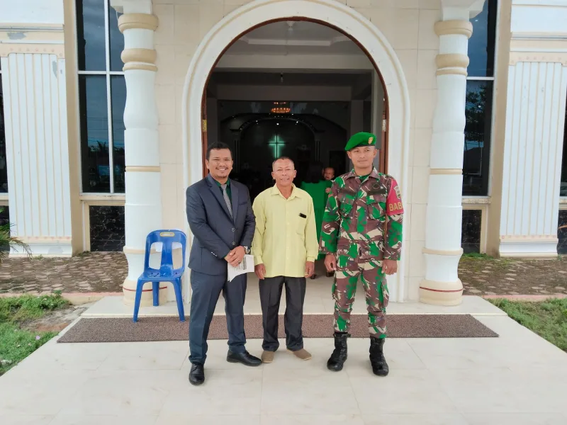 Dalam upaya mempererat hubungan dengan masyarakat serta meningkatkan sinergi antara TNI dan warga, Babinsa Koramil 03/Siantar Selatan Kodim 0207/Simalungun Kopda Winky Gunawan melaksanakan kegiatan komunikasi sosial (komsos) bersama warga yang sedang melaksanakan ibadah Minggu di Gereja HKBP Tapian Nauli, Kelurahan Sukaraja, Kecamatan Siantar Marihat, Kota Pematangsiantar, Minggu (4/5/2025).