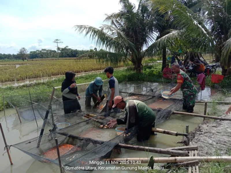 Minggu 11 Mei 2025 – Dalam upaya mempererat hubungan antara TNI dan masyarakat, Babinsa Koramil 08/Bangun, Kodim 0207/Simalungun, Sertu Sirkus Edi, melaksanakan kegiatan ketahanan pangan (hanpang) di sektor peternakan ikan bersama warga di Nagori Silulu, Kecamatan Gunung Malela, Kabupaten Simalungun.
