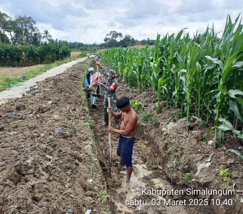 , 8 Maret 2025 – Dalam upaya menjaga kebersihan lingkungan dan mencegah banjir, Babinsa Koramil 09/Tiga Balata Kodim 0207/Simalungun, Serda P. Simatupang, bersama warga melaksanakan gotong royong membersihkan aliran parit di Dusun 1 Pasar Baru, Nagori Dolok Tomuan, Kecamatan Dolok Panribuan.