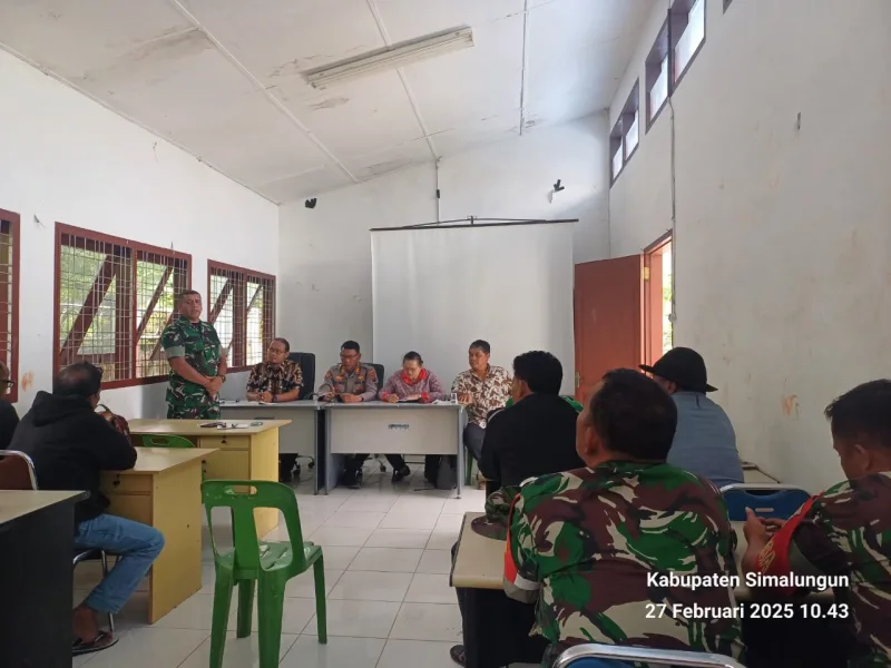 BabinsaKoramil 09/Tiga Balata Kodim 0207/Simalungun, Serma Poltak Pakpahan beserta empat Babinsa lainnya menghadiri rapat sosialisasi pertanian terkait data laporan Harga Pokok Produksi (HPP) Gabah Kering Panen (GKP) dan harga gabah yang ditetapkan oleh Bulog. Kegiatan ini berlangsung pada Kamis, 27 Februari 2025, pukul 10.00 WIB, di Kantor Balai Penyuluhan Pertanian (BPP) Kecamatan Dolok Panribuan.