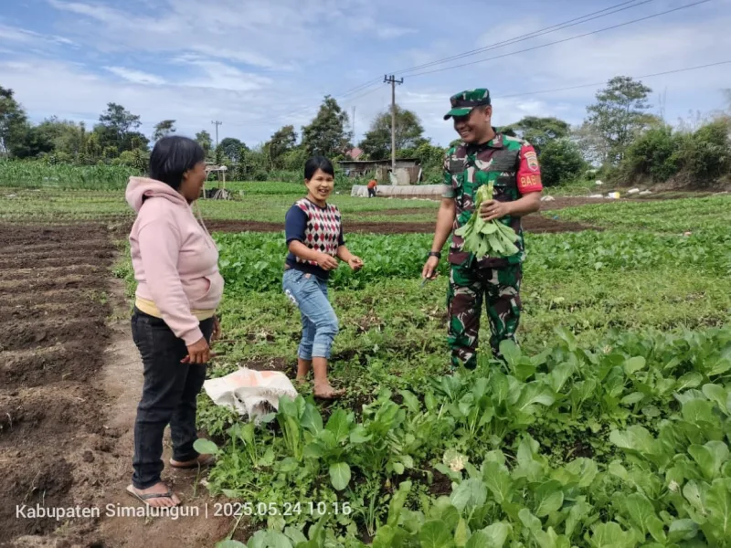 Sabtu 24 Mei 2025 — Bentuk kepedulian TNI terhadap masyarakat terus ditunjukkan melalui aksi nyata di lapangan. Babinsa Koramil 12/Saribu Dolok, Kodim 0207/Simalungun, Kopda E.S. Sijabat turut serta membantu petani memanen sayuran sawi di lahan milik warga yang berada di Nagori Ujung Saribu, Kecamatan Pamatang Silimahuta.