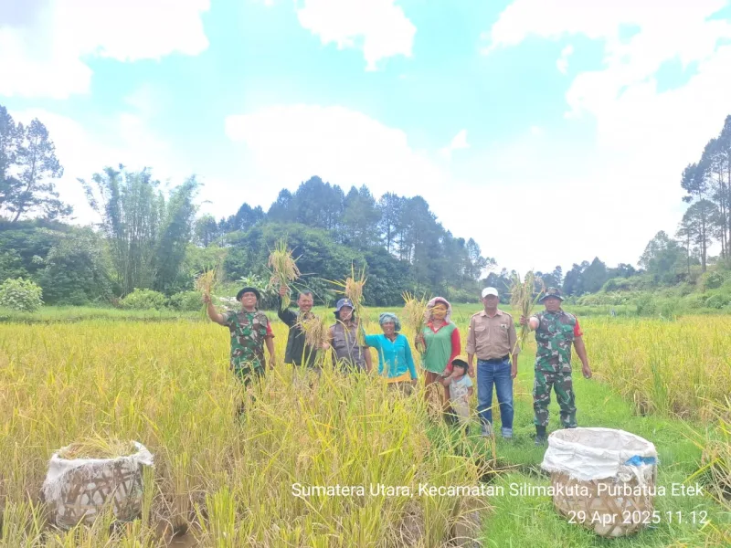Selasa 29 April 2025 – Dalam semangat mendukung ketahanan pangan nasional serta mempererat hubungan dengan masyarakat, Babinsa Koramil 12/Saribu Dolok Kodim 0207/ Simalungun Sertu Darwin Purba dan Kopda Tuah Marganda Damanik, melaksanakan kegiatan pendampingan panen raya padi di Nagori Purba Tua Etek, Kecamatan Silimakuta, Kabupaten Simalungun.
