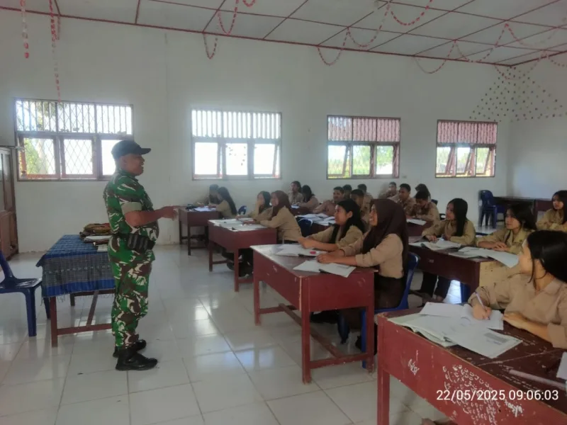 Kamis22 Mei 2025 — Dalam upaya memperkuat semangat nasionalisme dan membentengi generasi muda dari bahaya narkoba, Bintara Pembina Desa (Babinsa) Koramil 14/Raya Kodim 0207/Simalungun, Serka Alex Harahap, melaksanakan kegiatan sosialisasi Wawasan Kebangsaan kepada para siswa-siswi SMK Negeri 1 Raya.