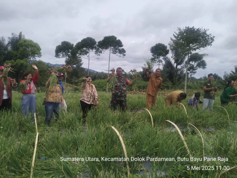 Senin 5 Mei 2025 — Dalam rangka mendukung pengembangan pertanian berbasis riset dan kolaborasi, Babinsa Koramil 15/Dolok Pardamean Kodim 0207/Simalungun, Serda Zainal Arifin, menghadiri kegiatan Panen Raya Bawang Merah hasil penelitian bersama antara Fakultas Pertanian Universitas Simalungun (USI) dan masyarakat Nagori Sihemun Baru, Kecamatan Dolok Pardamean, Kabupaten Simalungun.