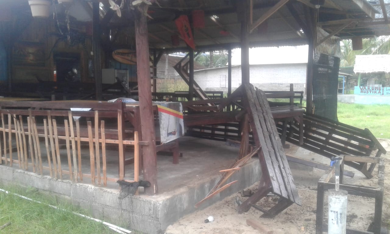 “Café saya rusak, rumah saya kacanya pecah dan gerbang dibengkokan,” ucap Budi, warga Dusun Pancer, Sabtu (28/3/2020).