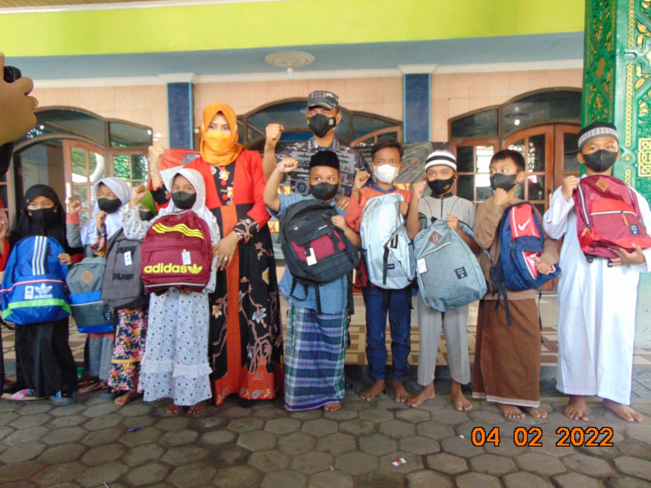 CILEGON| – Di tengah Pademik Covid-19, TNI AL Banten tak henti-hentinya melakukan langkah dan bentuk peduli terhadap kondisi masyarakat yang kurang mampu, Kali ini membagikan Tas Sekolah berserta perlengkapan solat untuk 100 anak yatim piatu, yang dilaksanakan di masjid Al Muttaqin, Jalan Yo Sudarso no 1 link merak mekar Sari Kecamatan Pulo merak, Jumat (04/02/2022).