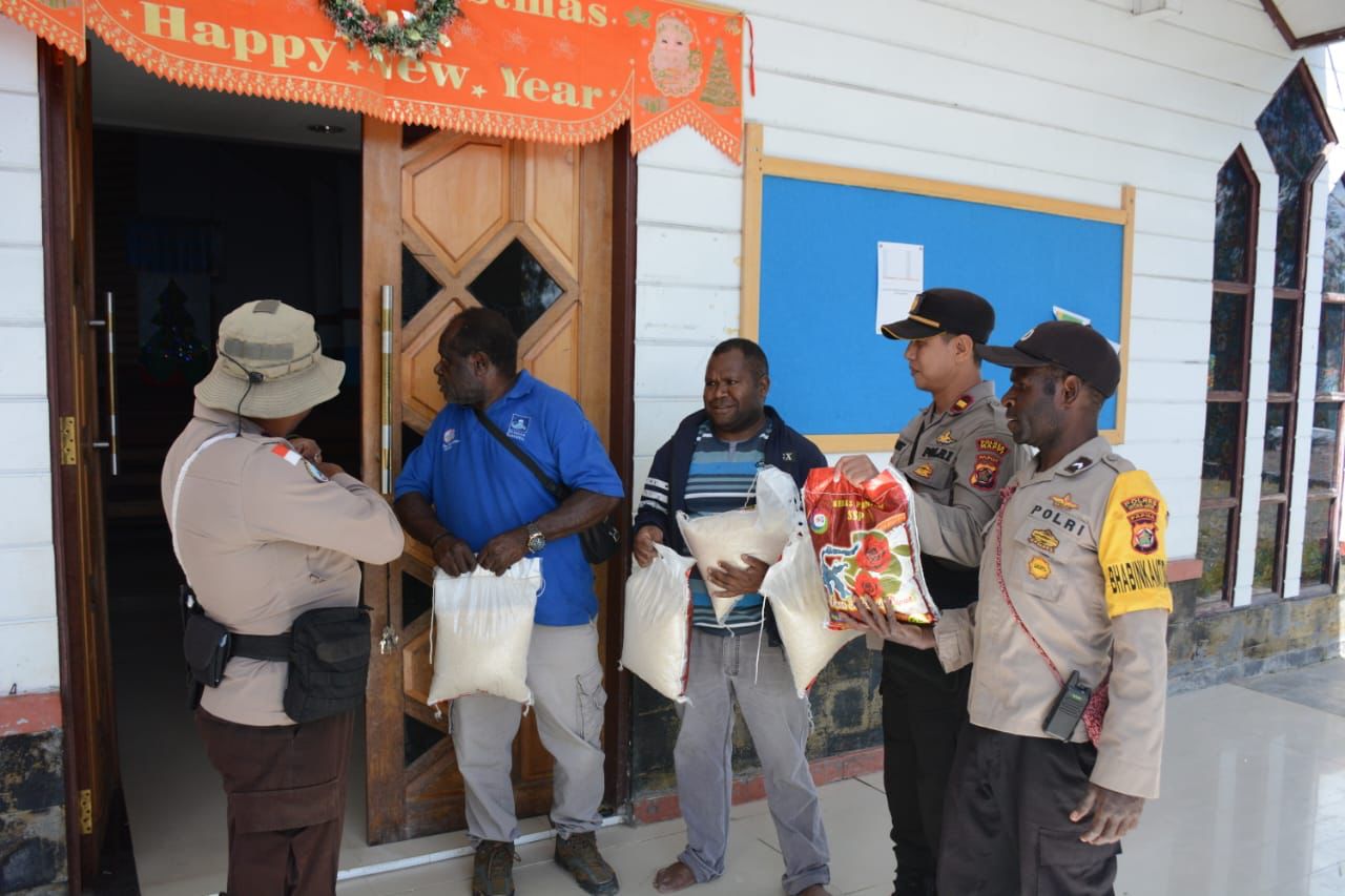 Ipda Arisandi saat dikonfirmasi menyampaikan, bahwa polri melalui Binmas Noken datang memberi bantuan sembako untuk menyambut datangnya hari Natal.
