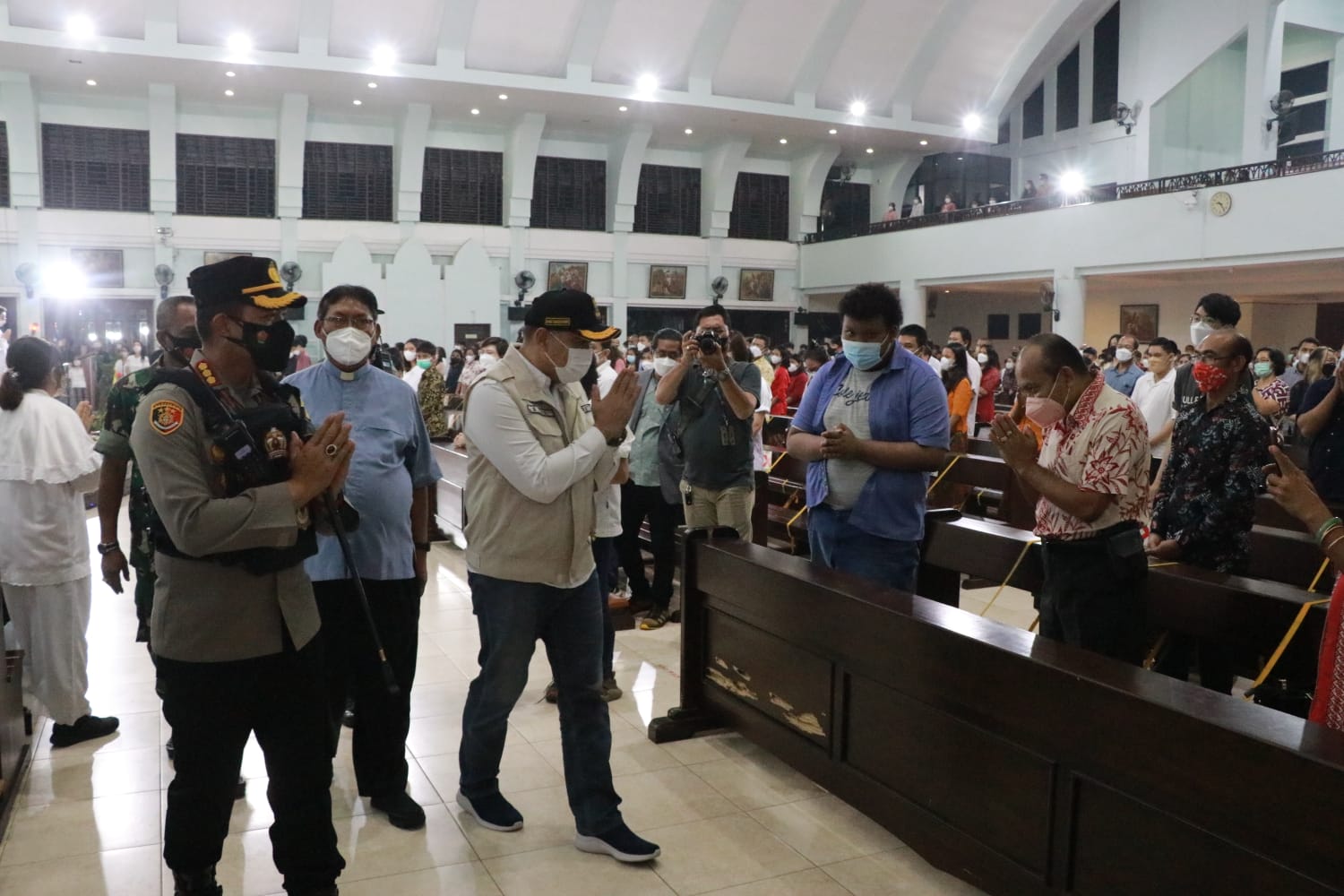 “Kami tinjau langsung untuk memastikan Misa Natal aman dan nyaman untuk para jemaat. Serta tertib protokol kesehatan,” kata Wahyu.