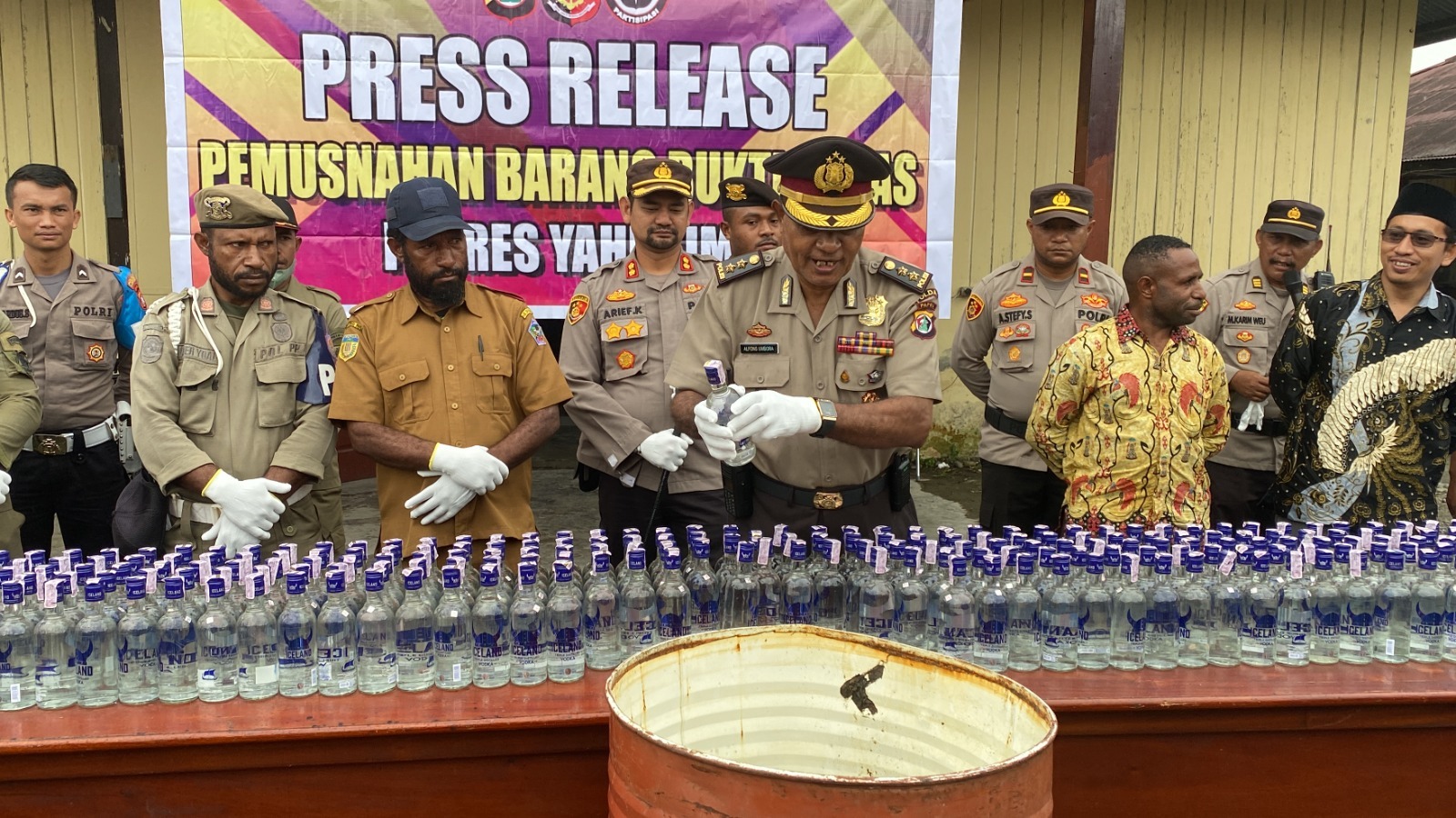 Laporan: Anton Papua//Poskota.net – Bertempat di depan Aula Mapolres Yahukimo telah dilakukannya Pemusnahan Ratusan Barang Bukti Miras hasil Razia Polres Yahukimo, Selasa (31/1). Kegiatan…