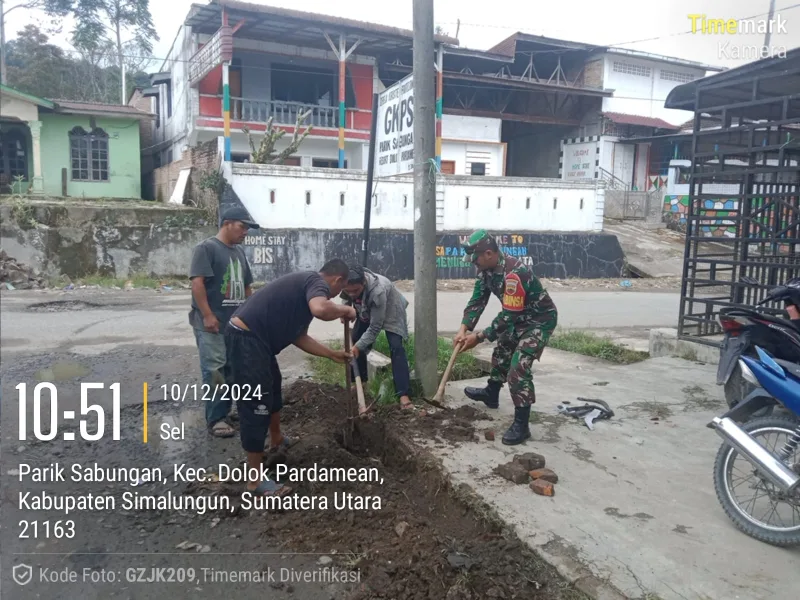 Selasa, 9 Desember 2024 – Dalam upaya mendukung program Badan Usaha Milik Nagari (BUMNag) untuk meningkatkan pelayanan kepada masyarakat, Babinsa Koramil 15/Dolok Pardamean Kodim 0207/Simalngun Serda B. Malau, turut serta dalam kegiatan pemasangan pipa air bersih di Nagori Parik Sabungan Kecamatann Dolok Pardamean kabupaten Simalungun. Kegiatan ini bertujuan untuk mempermudah akses air bersih bagi warga yang sebelumnya kesulitan memperoleh pasokan air yang memadai.