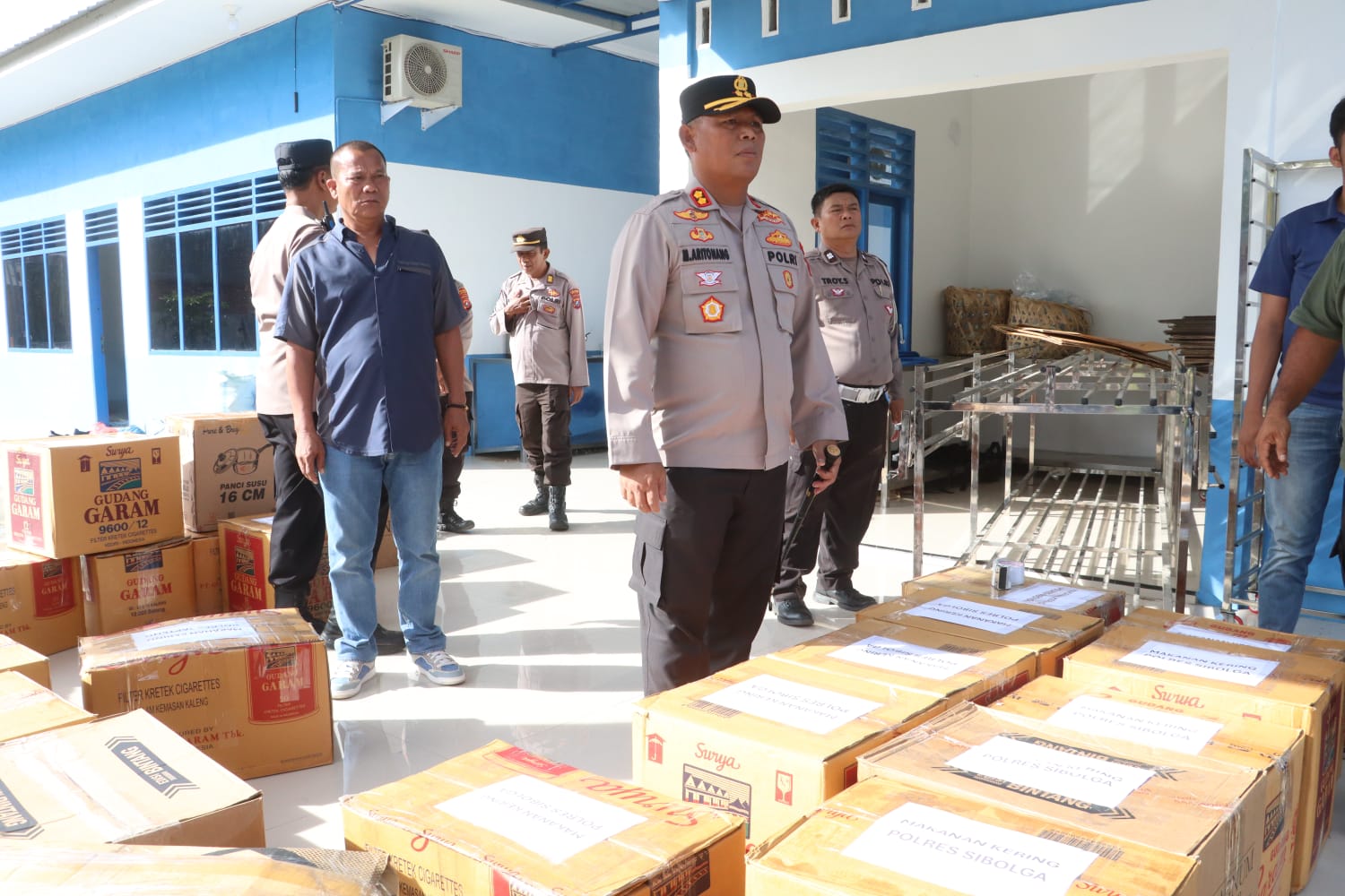 Kapolres Simalungun AKBP Marganda Aritonang S.H., S.I.K., M.M. yang memimpin langsung acara pemberangkatan tampak bangga dengan kerja keras timnya. Bersama Ibu Ketua Bhayangkari Cabang Simalungun NY. Nanik M. Aritonang dan seluruh jajaran pimpinan, ia menyaksikan hasil kerja keras dua hari yang kini siap dikirim ke lokasi bencana.