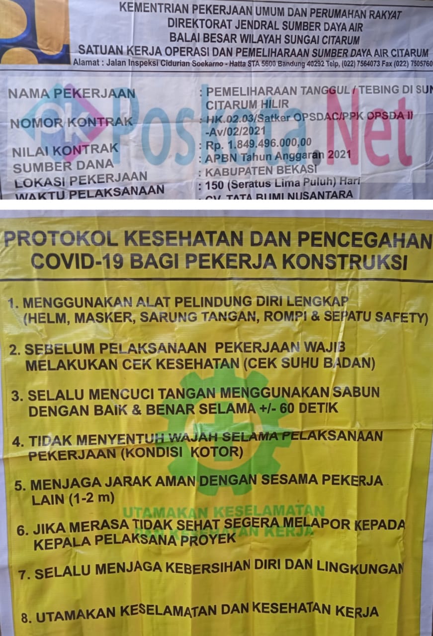 BEKASI| – Proyek pembangunan Pemeliharaan Tanggul/Tebing di Sungai Citarum Hilir. Dengan menggunakan Batu Beronjong. Yang mana pada saat ini sudah kelar dikerjakan oleh Pihak Ketiga yaitu Kontraktor CV. TATA BUMI NUSANTARA. Dengan Nilai Anggaran sebesar Rp.1.849.496.000.00 (Satu Milyar Delapan Ratus Empat Puluh Sembilan Juta Empat Ratus Sembilan Puluh Enam Ribu Rupiah).