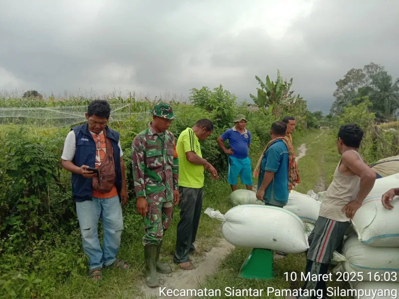 10 Maret 2025 – Dalam upaya mendukung ketahanan pangan dan menstabilkan harga gabah di tingkat petani, Bintara Pembina Desa (Babinsa) Koramil 08/ BangunKodim 0207/ Simalungun Sertu Suhendra, Turut serta mendampingi Tim Bulog Pematang Siantar dalam kegiatan penyerapan gabah sebanyak 905 Kg, dari hasil panen milik Kelompok Tani Dasroha IV dengan Ketua Kelompok Tani Rendi Sinaga , Petani Rendi Sinaga di Huta Ill , Nagori Pamatang Silampuyang, Kecamatan Siantar , Kabupaten Simalungun.