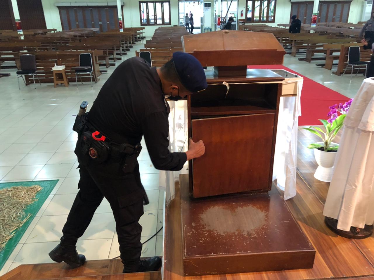 Kapolresta Tangerang Kombes Pol Wahyu Sri Bintoro menerangkan, semua sudut di tiap ruangan tidak luput dari pemeriksaan. Sterilisasi juga dilakukan hingga kawasan parkir dan sekitaran gereja.