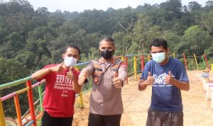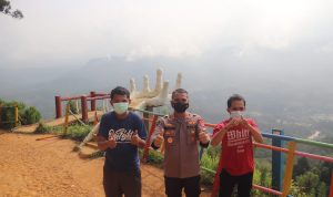 Saat mengeksplor Negeri di Atas Awan, Gunung Luhur Kabid Humas Polda Banten menyapa wisatawan dari Kramatwatu Kota Serang Ronal dan Salomo