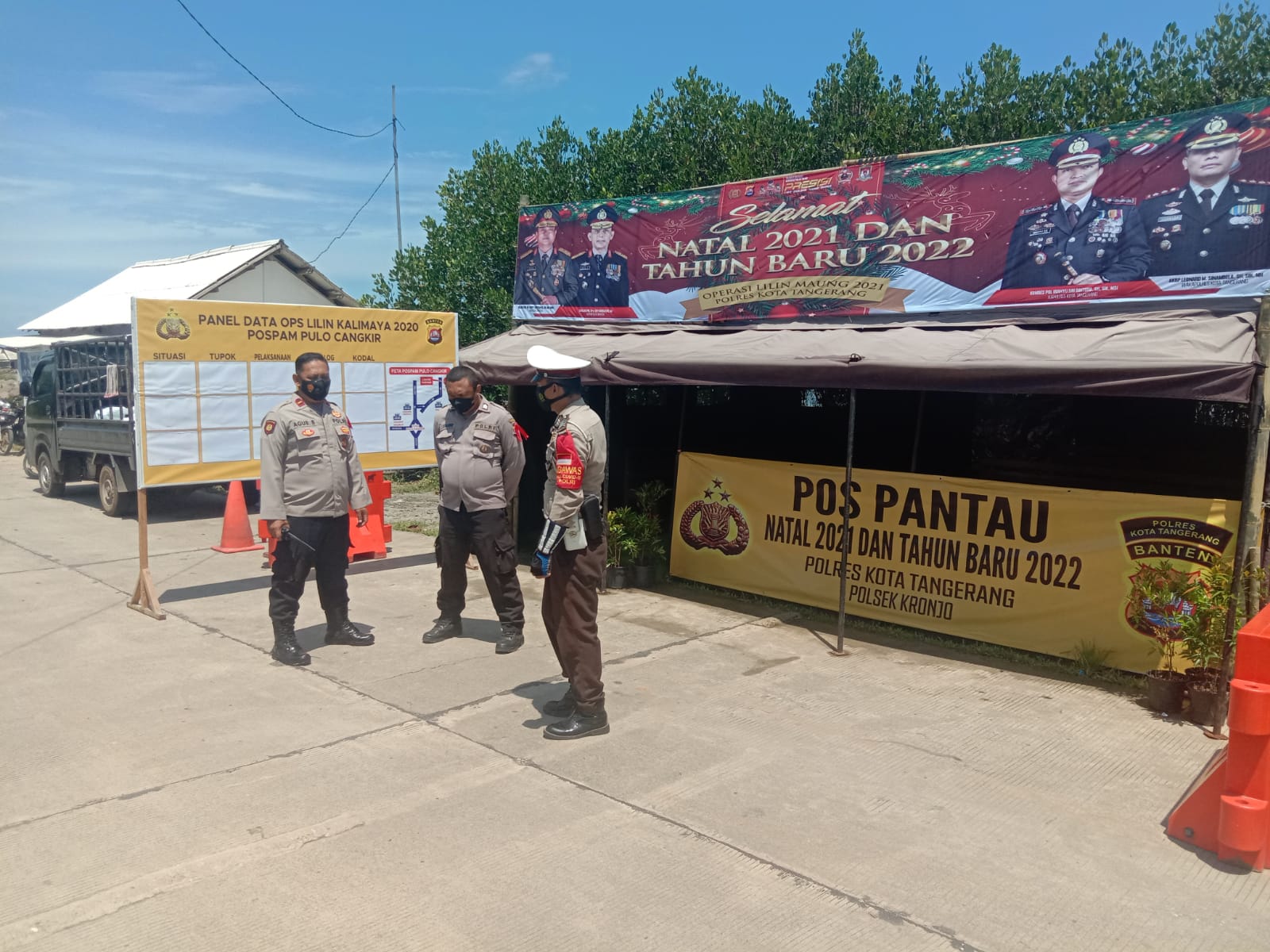 Kapolsek Kronjo Polresta Tangerang Cek Pos Pantau Nataru Pulo Cangkir.