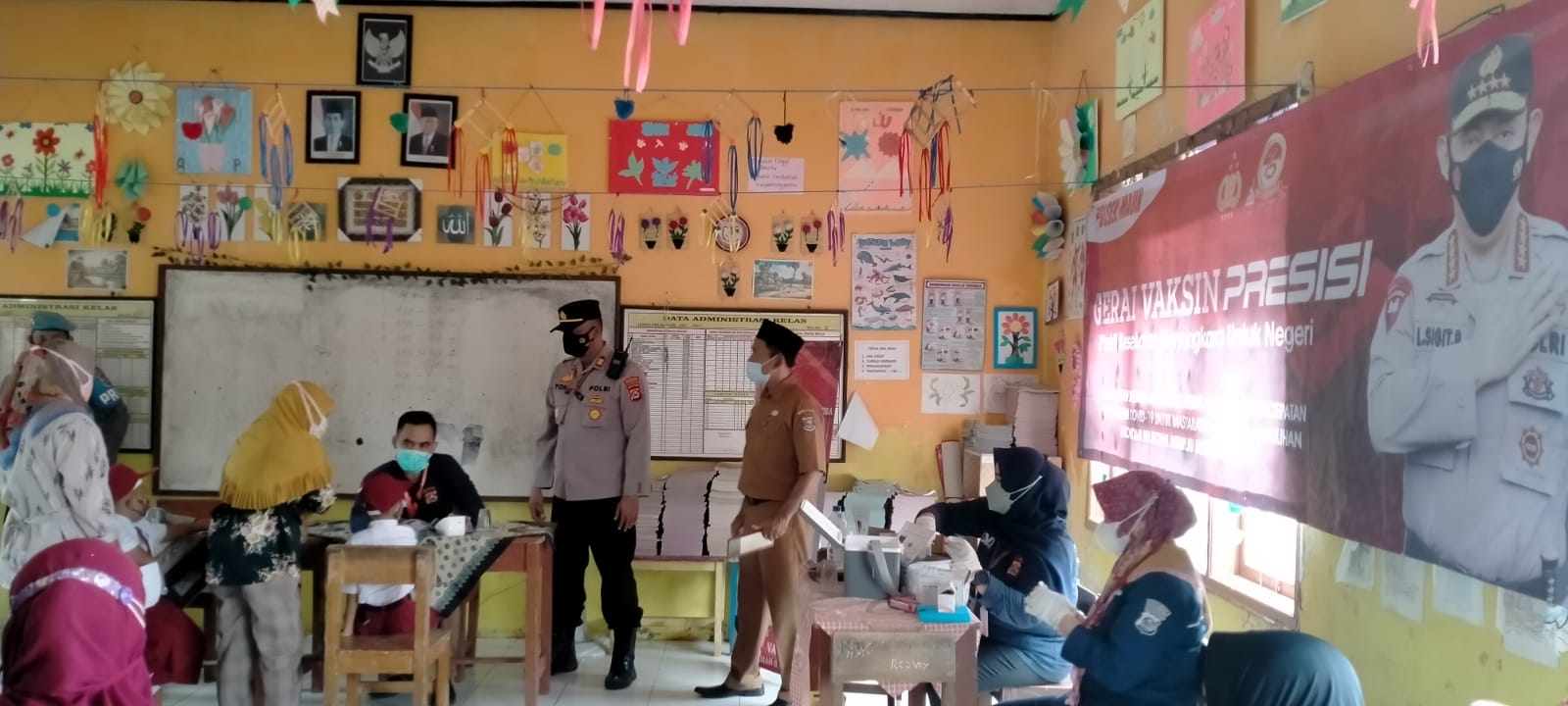 TANGERANG,Poskota.Net – Guna pencegahan Covid-19 dengan membentuk Herd Immunity di usia 6-11 Tahun, Kapolsek Mauk Polresta Tangerang Polda Banten AKP Yono Taryono Monitor Vaksinasi di SD Setia Bhakti, Desa Mauk Barat, Kecamatan Mauk, Kabupaten Tangerang, Selasa (21/12/2021).