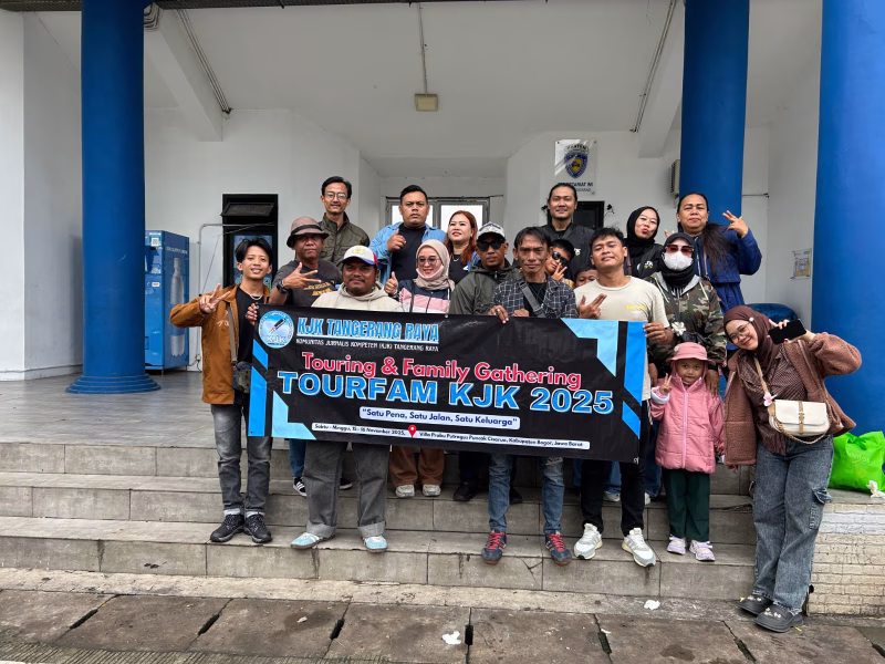 Bogor — Komunitas Jurnalis Kompeten (KJK) Tangerang Raya sukses menggelar kegiatan **Touring Family Gathering, yang dirangkaikan dengan peluncuran soundtrack resmi berjudul “Satu Suara” Acara ini diikuti oleh ketua KJK Tangerang Raya Agus M Romdoni pembina KjK San rodi Kucay, sesepuh kota Tangerang H Rosadi dan puluhan anggota beserta keluarga, yang bersama-sama melakukan perjalanan menuju lokasi Villa Prabu Putragus di kawasan Cisarua Bogor,” Sabtu (15/11/2025)
