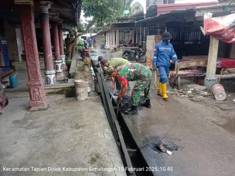 , 15 Februari 2025 – Bintara Pembina Desa (Babinsa) koramil 05/ Serbelawan Kodim 0207/ Simalungun, Koptu R.Nainggolan, kembali menunjukkan peran aktifnya dalam mendukung kegiatan masyarakat. Kali ini, ia bersama warga  Nagori Dolok Maraja Kecamatan Tapian Dolok, Kabupaten Simalungun. menggelar kerja bakti untuk membersihkan selokan parit yang tersumbat akibat sampah dan endapan lumpur.