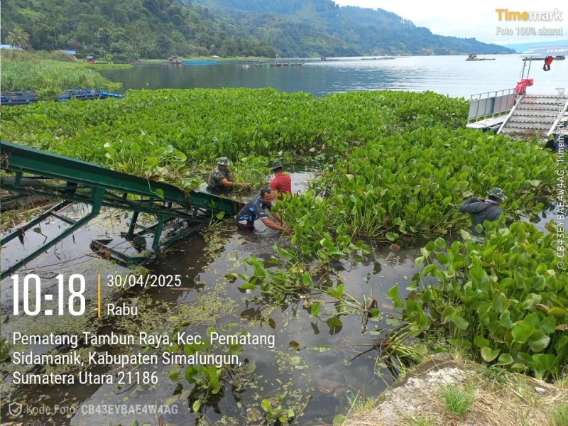 Rabu 30 April 2025 – Sebagai bentuk kepedulian terhadap kelestarian lingkungan, Personel Kodim 0207/Simalungun yang tergabung dalam satuan tugas (Satgas) lingkungan terus melakukan aksi nyata pembersihan enceng gondok di perairan Danau Toba yang berada di wilayah Nagori Tambun Raya, Kecamatan Sidamanik, Kabupaten Simalungun.
