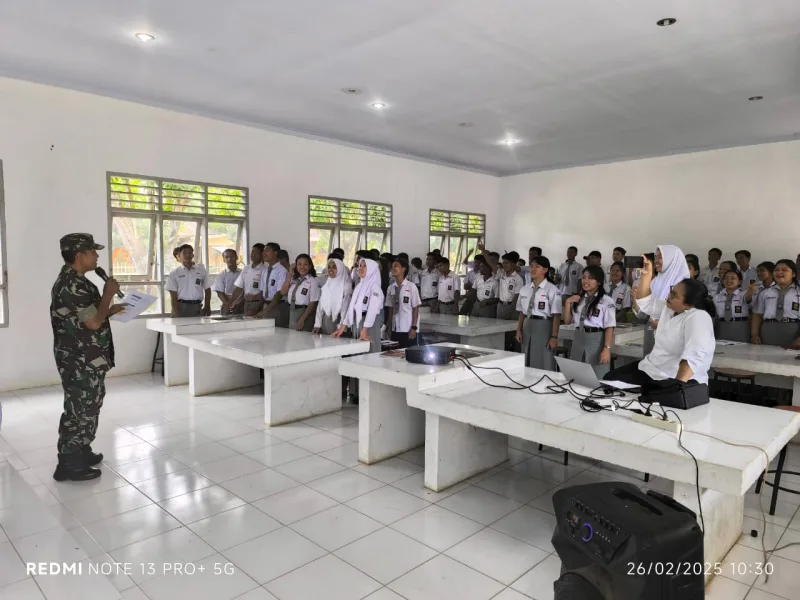 , 26 Februari 2025 – Dalam upaya mencegah penyalahgunaan narkoba di kalangan pelajar, Danramil 19/Silau Kahean Kodim 0207/Simalungun, Kapten Inf Sugiharto, bersama Babinsa Sertu Hebsy Syah Putra Lubis, menggelar penyuluhan dan sosialisasi tentang bahaya narkoba di SMA Negeri 1 Nagori Tani, Kecamatan Raya Kahean, Kabupaten Simalungun, Kamis (26/2).