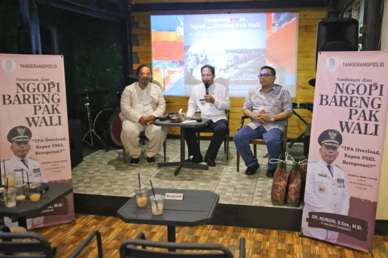 Tangerang,poskota.net —- Penjabat (Pj) Wali Kota Tangerang, Dr. Nurdin, menghadiri sekaligus menjadi narasumber dalam kegiatan Santunan dan Ngopi Bareng Pak Wali yang diselenggarakan oleh salah satu media lokal, Tangerang Pos. Dalam acara bincang santai yang dihadiri oleh para insan media baik lokal maupun nasional tersebut, Pj Wali Kota membahas tentang strategi dan upaya pengelolaan sampah di Kota Tangerang.