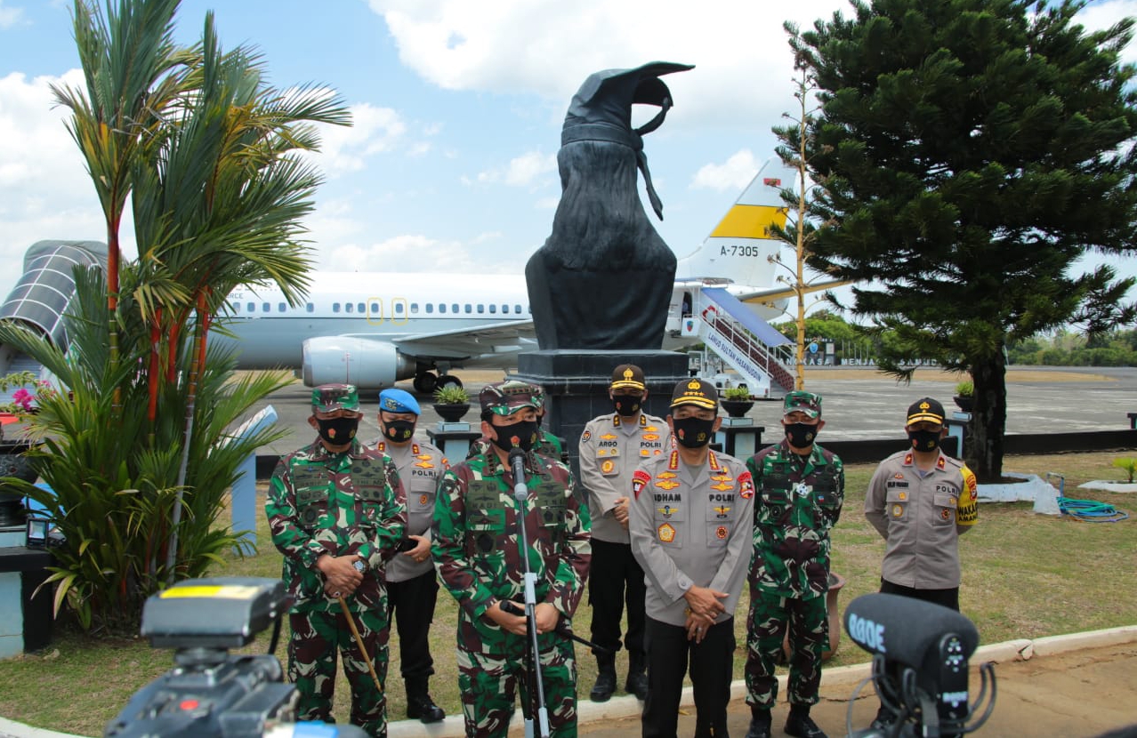 Hal tersebut dikatakan Panglima TNI Marsekal TNI Hadi Tjahjanto, S.I.P., didampingi Kapolri Jenderal Polisi Drs. Idham Azis, M.Si. saat memberikan keterangan pers dihadapan awak media, bertempat di Pangkalan Udara Sultan Hasanuddin Makassar, Minggu (30/8/2020).