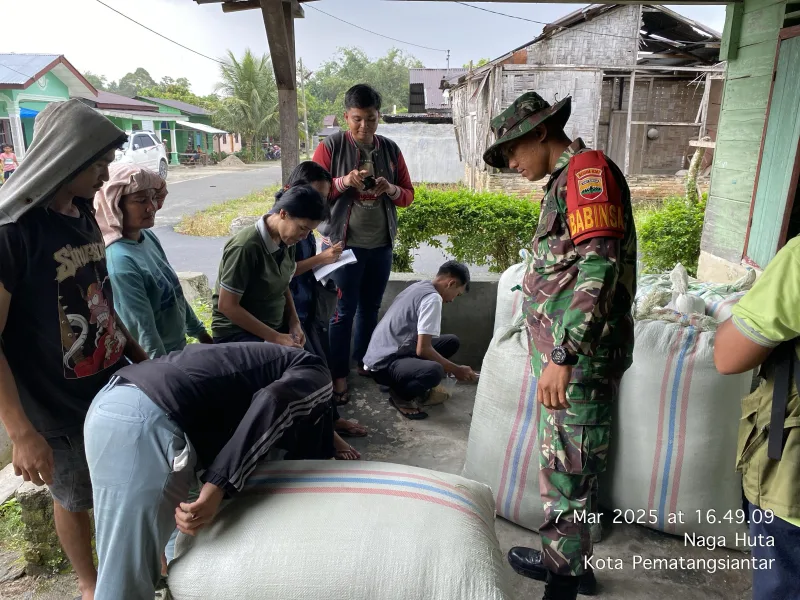 8 Maret 2025 – Babinsa Koramil 03/ Siantar Selatan Kodim 0207/Simalungun Kopda J. Manik, melaksanakan pendampingan terhadap Tim Bulog Pematang Siantar dalam kegiatan penyerapan gabah sebanyak 971Kg, dari hasil panen milik Ibu Simanjuntak, di Kelurahan Nagahuta Kecamatan Siantar Marimbun Kota Pematang Siantar. Gabah berhasil diserap dalam upaya mendukung ketahanan pangan Nasional.