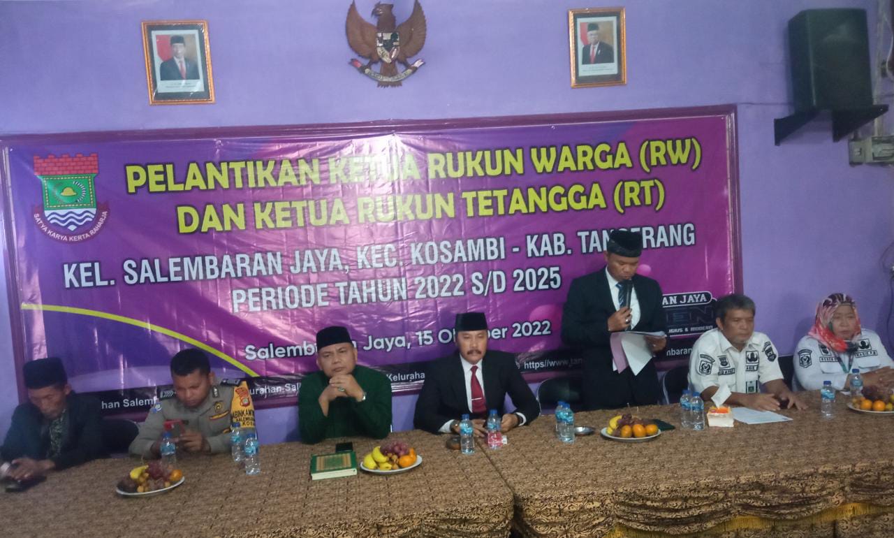 Lurah Salembaran Jaya Ade Sunaryo dalam sambutannya mengucapkan selamat kepada RW dan RT yang pada hari ini dilantik dengan masa bakti 2022-2025. Ini merupakan bagian yang tidak terpisahkan dalam sebuah sistem dinamika Pemerintah Kelurahan.