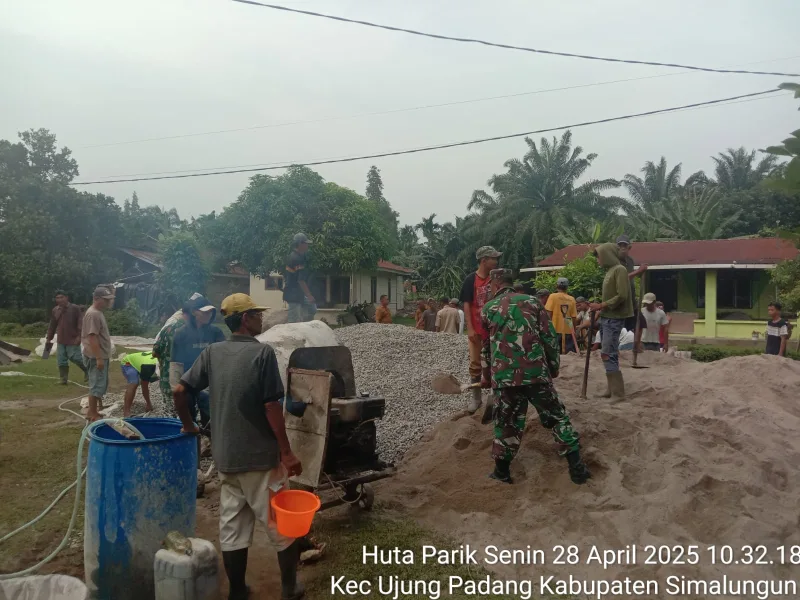 Senin 28 April 2025 – Dalam upaya mendukung pembangunan infrastruktur di pedesaan, Babinsa 07/Bosar Maligas Kodim 0207/Simalungun Sertu Suratno, Melaksanakan kegiatan trial pekerjaan rabat beton di Huta Parik Nagori Huta Parik Kecamatan Ujung Padang Kabupaten Simalungun.