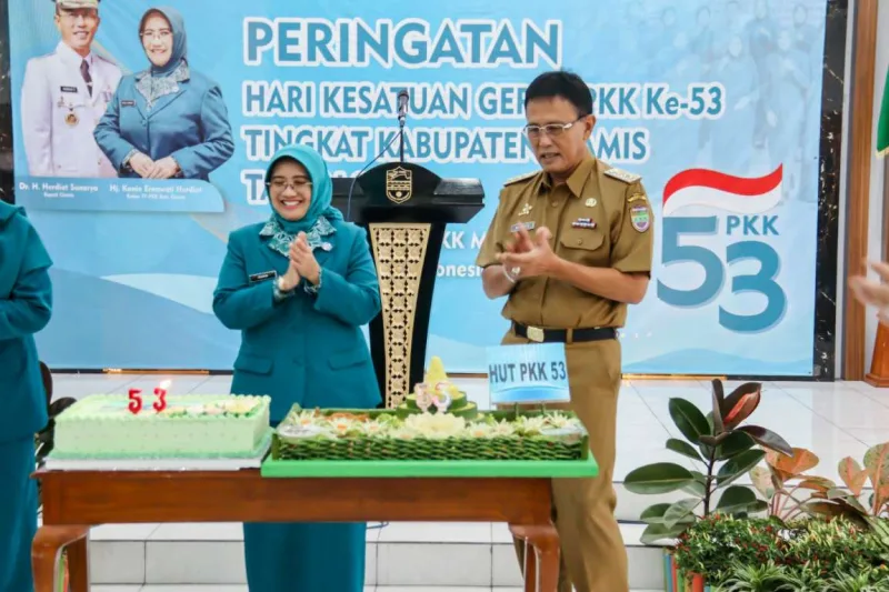 Ciamis,Poskota,Net- Bupati Ciamis, Herdiat Sunarya, menghadiri langsung Peringatan Hari Kesatuan Gerak (HKG) PKK ke-53 tingkat Kabupaten Ciamis yang digelar di Aula PKK Ciamis pada Senin (19/05/2025).