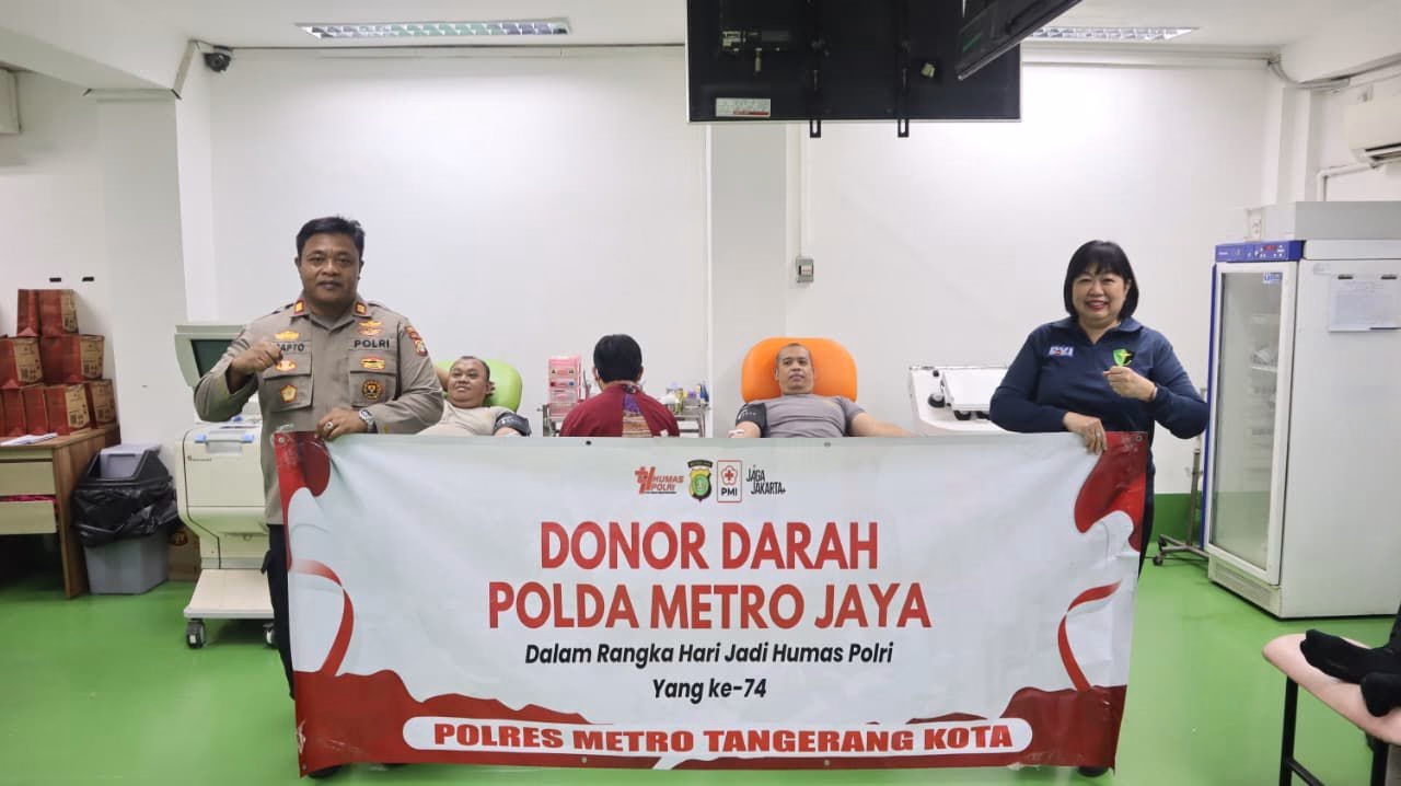 Dalam rangka memperingati Hari Jadi Humas Polri ke-74, Sihumas Polres Metro Tangerang Kota menggelar kegiatan donor darah yang berlangsung di Kantor PMI Kota Tangerang.