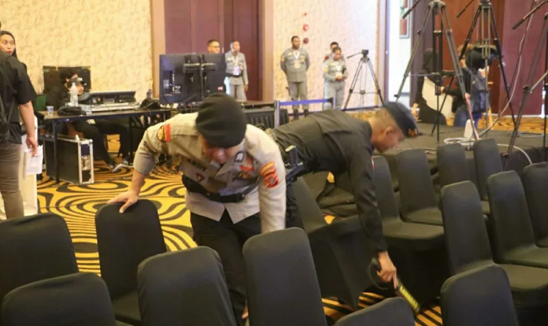 “Sterilisasi aula hotel yang dimenjadi lokasi debat nantinya akan dilakukan oleh Susatgas Sterilisasi bekerjasama dengan Subsatgas Jibom dengan menggunakan peralatan metal detector”.