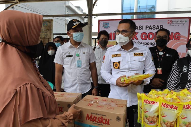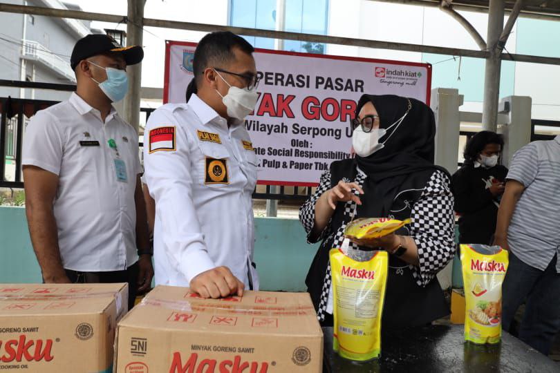 TANGERANG SELATAN| – Wakil Wali Kota Tangerang Selatan (Tangsel) Pilar Saga Icshan memberikan apresiasi kepada PT. Indah Kiat Pulp & Paper yang telah menggelar operasi pasar minyak goreng seharga Rp. 14 ribu yang berlokasi di Kantor Kelurahan Pakulonan, Kecamatan Serpong Utara, Rabu (09/02/2022).