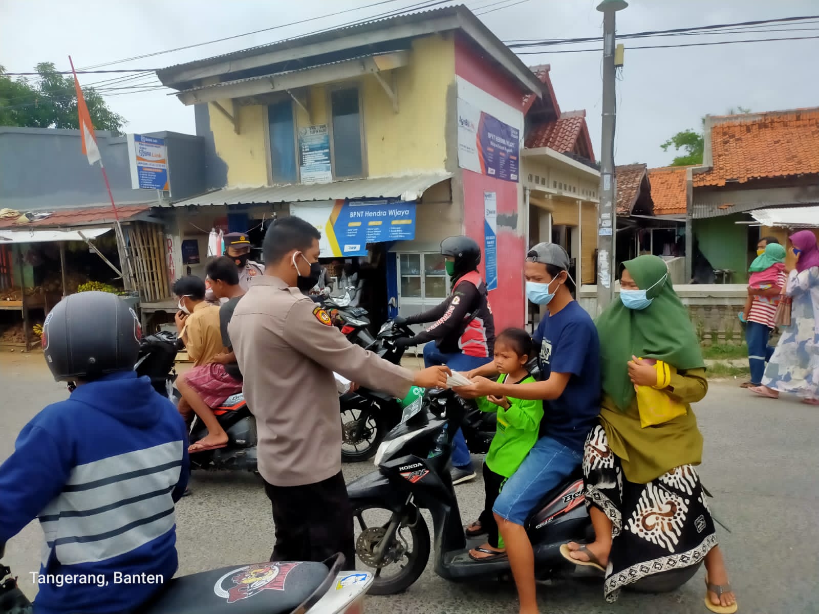 Kapolsek Mauk Polresra Tangerang AKP Rustantiyo mengatakan, kegiatan tersebut rangka menekan angka penyebaran Covid-19 dengan pembagian masker gratis di setiap posko PPKM Mikro yang ada di desa.
