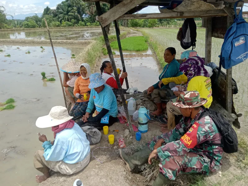 Kegiatan Komsos ini dilakukan secara santai sambil berbincang di sela-sela waktu istirahat kerja para petani. Suasana akrab dan penuh kekeluargaan tampak dalam pertemuan tersebut, menjadi bukti nyata kedekatan Babinsa dengan warga binaannya.