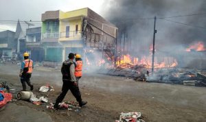 TAPUT, Poskota.Net – Kebakaran terjadi dikelurahan pasar siborongborong dalam waktu dua jam lima unit rumah warga dan sepuluh kios milik pemkab taput habis dilalap api rabu 22/9/21.