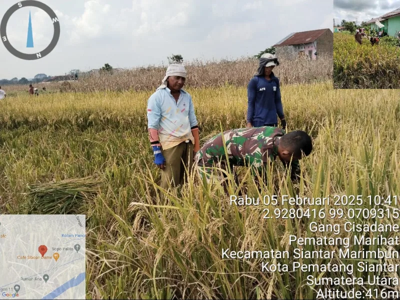 Pendampingan terhadap petani terus dilakukan oleh Babinsa guna meningkatkan hasil pertanian sehingga mewujudkan ketahanan pangan, seperti yang dilakukan Babinsa Koramil 03/ Siantar Selatan Kodim 0207/Simalungun Kopda Winky gunawan, membantu memanen padi milik petani Muliadi, Bertempat di Kel. Pematang marihat Kecamatan Siantar Marimbun Kota Pematangsiantar. Rabu , (5/02/2025).