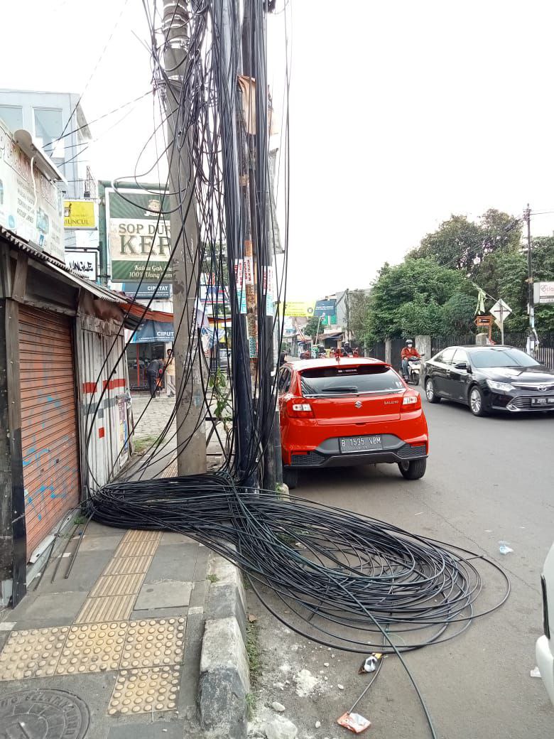 Tidak Ada Toleransi Lagi, DPU Putus Kabel dan Potong Tiang Milik Provider Internet di Jalan Wr. Supratman Ciputat Timur — poskota.net