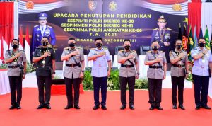 JAKARTA| – Panglima TNI Marsekal Hadi Tjahjanto dan Kapolri Jenderal Listyo Sigit Prabowo menghadiri penutupan pendidikan Sespimti Polri Dikreg ke-30, Sespimen Polri Dikreg ke-61 dan Sespimma Polri Angkatan ke-66, di Lembang, Jawa Barat, Rabu (27/10/2021).