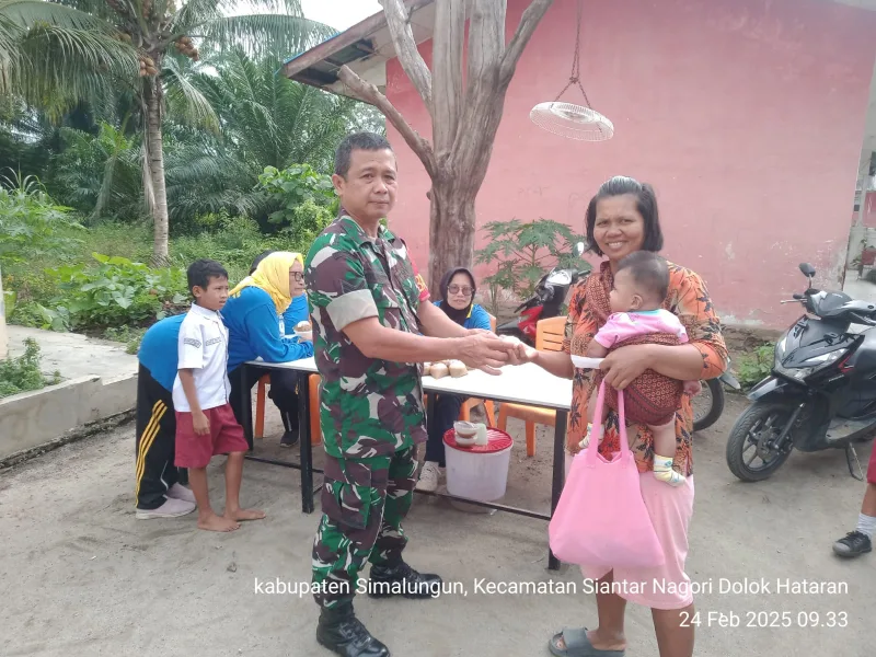 24 Februari 2025 – Bintara Pembina Desa (Babinsa) Koramil 08/Bangun Kodim 0207/Simalungun Sertu Ermayanto KS, melaksanakan pendampingan kegiatan Posyandu Terintegrasi yang mencakup pelayanan bagi balita, ibu hamil, dan lansia di Kantor Pangulu Nagori Dolok Hataran Kecamatan Siantar, Kabupaten Simalungun.