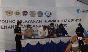CILEGON| – Dalam rangka memberikan Pelayanan yang terbaik PT. Krakatau Bandra samudra sebagai operator Krakatau International Port (KIP), telah di resmikan kantor Pelayanan Terpadu Satu Pintu (PTSP) oleh Wali Kota Cilegon Helldy Agustian, yang bertempat di jalan Raya Anyer Km 13 Cigading, Banten, Rabu (03/11/2021).