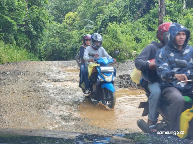 Dirinya juga menuturkan, semenjak hampir 10 Tahun yang lalu saat meninggalkan kampung halaman, jalan tersebut masih tak berubah sama kondisinya seperti saat sekarang ini,” sejak zaman Orba sepertinya masih sama waktu sekarang saya lihat. Hancur, berlobang, banyak genangan air dan Terjal berbatu sehingga mengganggu laju kendaraan R2 dan sulit dilalui R4, ya hanya saja sekarang ada pengerasan batunya sedikit,” masih ujarnya
